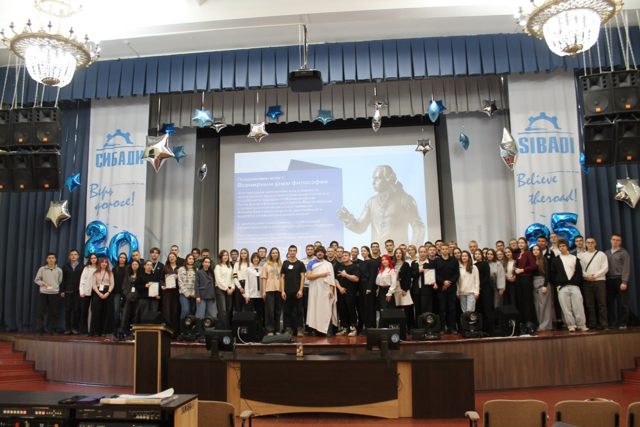20 ноября отмечается Всемирный день философии. Кафедра «Философия и история» и студенческий патриотический клуб «Дорога в будущее» организовали и провели для обучающихся СибАДИ Третий Философский марафон. Участников на мероприятии собралось не мало: 81 человек, среди которых и 7 студенческих команд (гр. АПб-24Т1, МТб-24С1, АДб-24С1, ИДб-24С1, АТТ-24Т1, ПТС-24Т1, БИ-24Э1, ПГС-24С1, ПГС-24С2), и студенты-организаторы 7 станций марафона с самыми разными испытаниями (гр. АРХб-23С1, СУЗ-22С1, АТб-23Т1, ПГС-22С2, АДб-24С1, ТГВб-22С1, СЭМ-24С1).