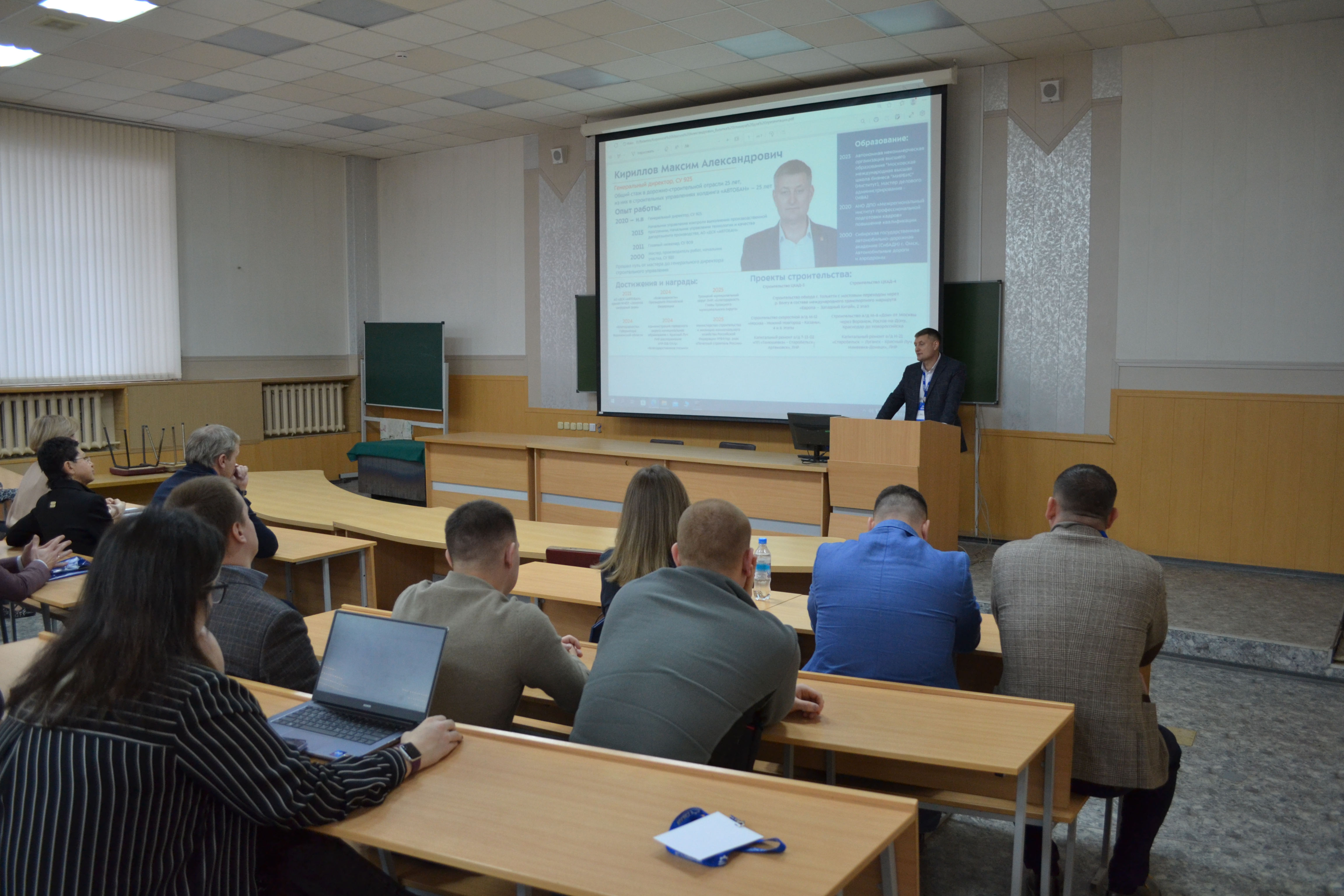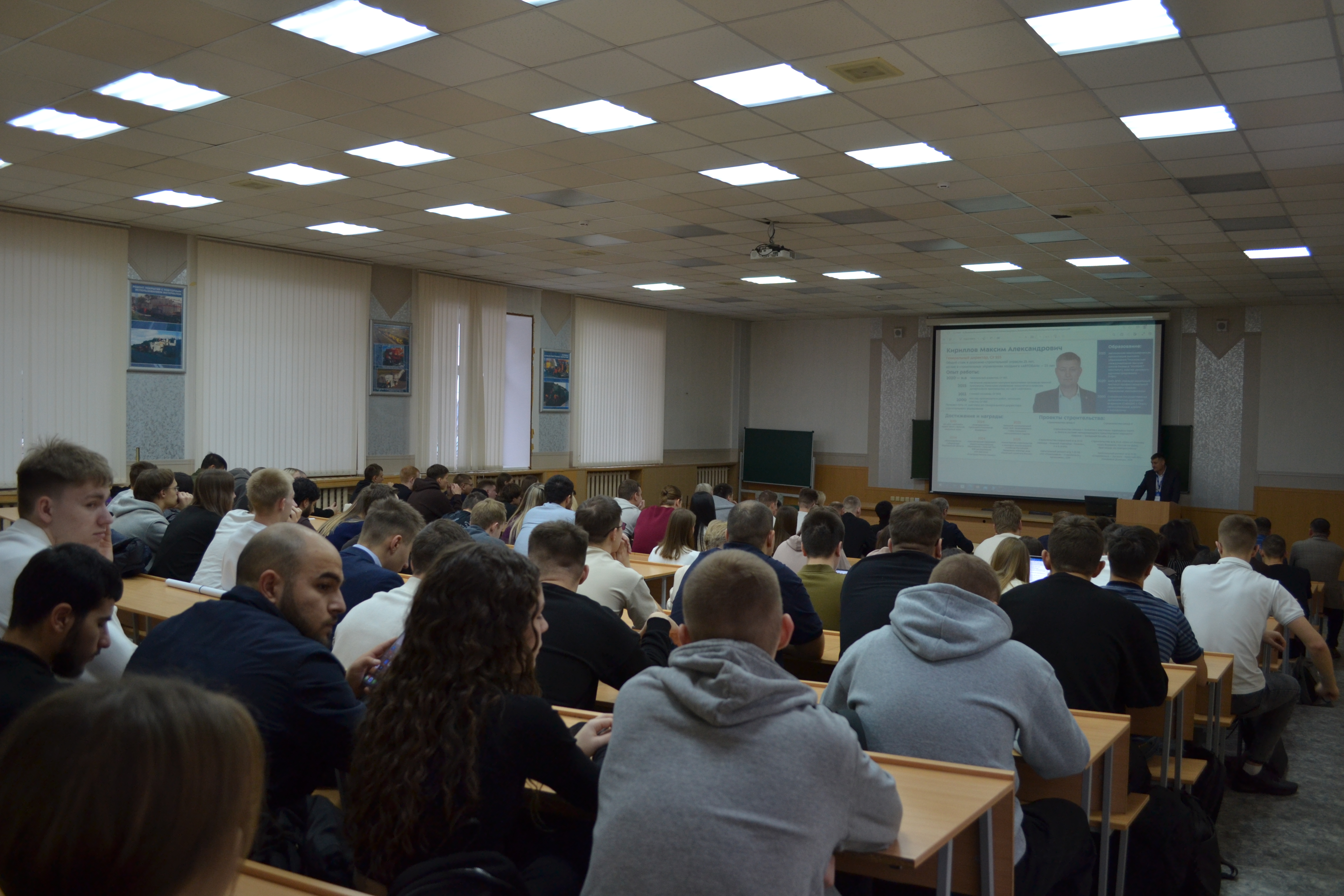 Генеральный директор ООО «СУ № 925» Максим Кириллов, заместитель генерального директора ООО «СУ № 967» Владислав Ухмылов и руководитель проекта АО «Ханты-Мансийскдорстрой» Алексей Зуб встретились со студентами, чтобы рассказать о своём пути к успеху. Их истории вдохновили аудиторию, наглядно показав, что карьерных высот можно достичь, начиная с университета, — с помощью таланта, упорного труда и целеустремлённости.